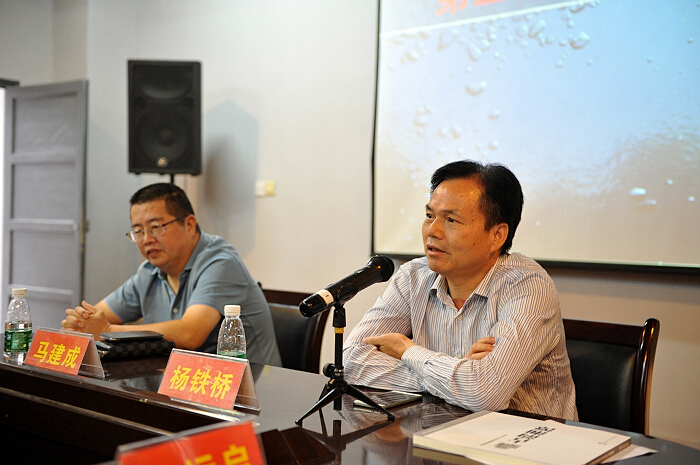 市委宣传部杨铁桥副部长讲话,他说设计艺术家协会充满朝气,充满希望。今后要多参与湘潭的城市建设进程,为政府做好设计参谋。