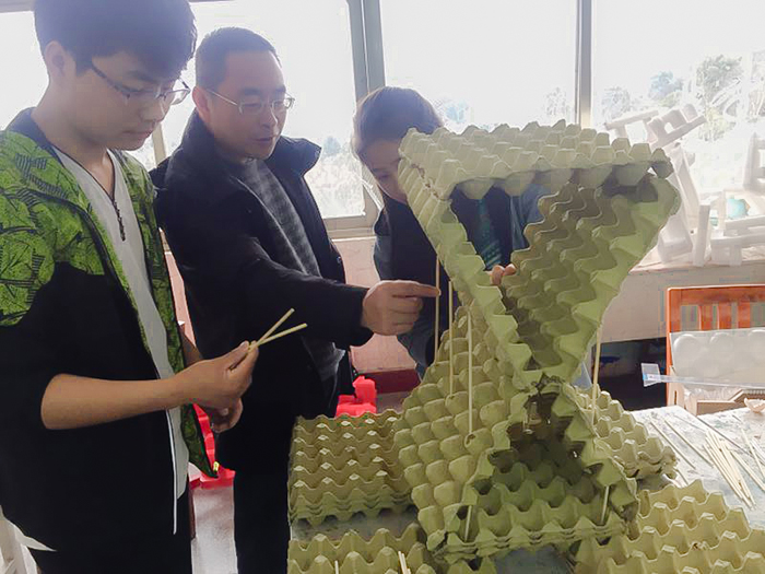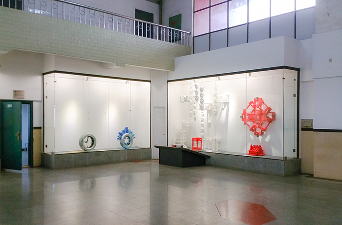 近日在伟德国际victor1946二楼大厅橱窗中举办了一场别开生面的艺术作品展览,展览的作品都是用日常生活用品或废弃物改造制作而成的,具有较强的现代设计感和鲜明独特的视觉效果,令观众耳目一新。这是环境艺术专业教学改革实践开设的一门新课程——“空间组合设计”首次教学成果的展示,作品都是由胡大虎老师指导的环艺1503班及1502班部分学生设计制作完成的。开学时,罗毅平副校长就到教室专门来听了这门课的第一堂课,并在课后对教学给予了指导和肯定。在胡老师的启发和引导下,学生走出课堂,在生活中寻找设计材料和灵感,大家发挥丰富的想象力,利用包装泡沫块、旧轮胎、旧伞骨、尼龙绳、铁丝网等废旧材料,化腐朽为神奇,设计制作出一件件富有奇思妙想的空间组合设计作品。这些作品有的具有前卫形态的装置艺术效果,有的具有未来建筑概念特征,通过这门理论与实践紧密结合的课程学习,同学们不但提高了空间设计能力,还获得了较好的材料认知能力和动手制作能力,作品的展出也为今后相关课程教学实践提供了参考和示范效应。