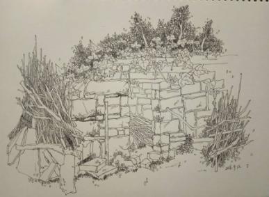 初到写生基地,大家被大自然的鬼斧神工所吸引。高耸的山石,翠绿的树林,潺潺的流水,石板堆砌的农家院,如画的风景让人陶醉,让人忍不住拿起相机和画笔记录下村庄的古