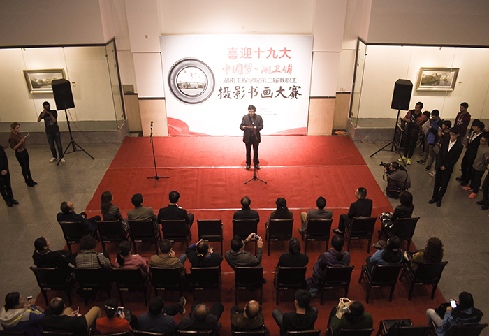 至此,伟德victor1946第二届教职工摄影书画大赛开幕仪式圆满结束。大赛以其专业性和高水平性,活跃了学校气氛,营造了一个充满活力和艺术氛围的健康校园,有利于促进大学生摄影创作水平的提升,提高了大学生的综合素质。在适逢党的十九大召开之际,“中国梦·湖工情”伟德victor1946第二届教职工摄影书画大赛正在用实际行动来喜迎十九大的胜利召开。每幅作品都蕴含着“不忘初心,继续前行”的社会主义信念,从不同角度向全校师生、全社会展示了一个生机勃勃的湖工。