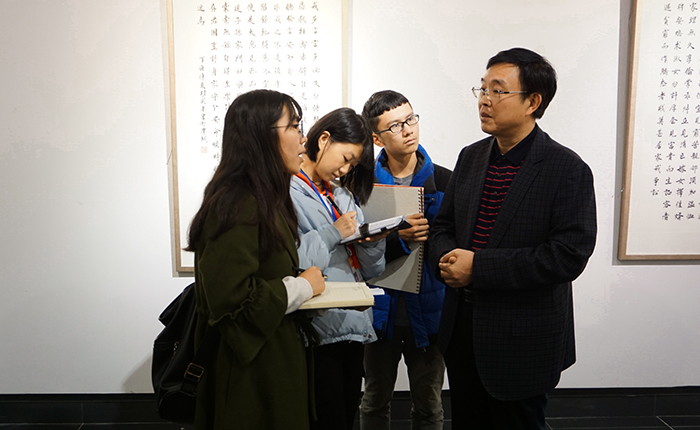 会场中观众们认真听取大赛细则,为提高自己的书法和摄影技巧捧一抔土、浇一杯水。此次大赛奖项设立书法佳作奖、摄影优秀奖和摄影一、二、三等奖,我院罗四蓉,娄申等老师荣获摄影奖项。激动人心的颁奖仪式后,刘熹微老师作为获奖代表代表发言,她表述道,书法和摄影,是一门艺术,是一种技巧,更是一种态度。本次书画摄影大赛作品大多立意深远、题材广泛、内容清新、格调高雅,大赛参赛者的摄影技术、观察和审美能力,对提高当代大学生对校园文化的认识提供了一个学习的舞台。活动最后,李军林宣布本届摄影书画作品展开幕,邀请在场的嘉宾观赏佳作。