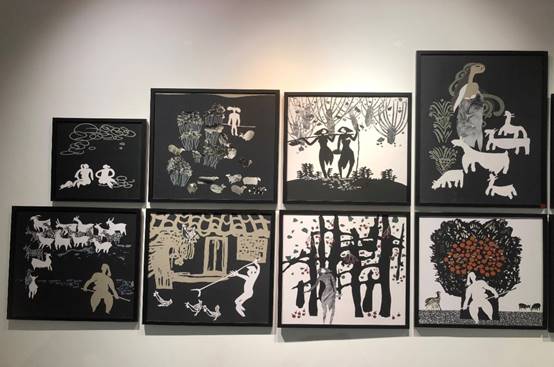 这次展出的汤三老师的剪纸艺术作品极具艺术想象力和地方文化特色,作品既还原了传统剪纸艺术的内涵和特点,同时又具备强烈的现代创作意识。他以剪纸入画,内容和题材取材自然,观照现实,妙趣横生,以独特的技艺拓展了剪纸艺术的表现空间。