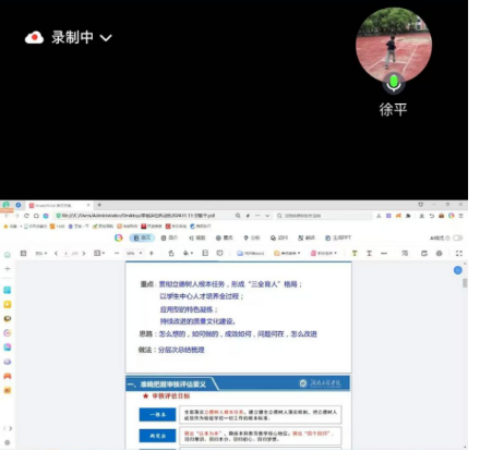 徐平副院长表示要紧紧围绕“一根本、两突出、三强化、五个度”的审核评估目标展开工作,充分了解本次评估的新变化。详细和老师们分享线上评估工作流程、内容及时间安排,并提出要求全员老师们要进一步了解评估工作的重点,围绕人才培养计划规范授课计划、教案等教学材料。