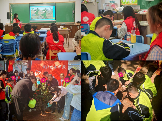 在校内爱心园区,双方混合编组开展植树活动。大家齐心协力完成挖坑、扶苗、填土等工序,特教学生在老师和志愿者帮助下积极参与。志愿者们始终耐心给予帮助与鼓励,用温暖的笑容和细致的动作,让特教学生感受到参与劳动的快乐与成就,现场洋溢着友爱互助的浓厚氛围。