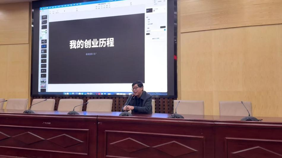 本次讲座以“技术风口下的创业实践”为主题,冯广校友结合自身 8 年互联网行业从业经历、百度资深设计师职业历程及创业实战经验,围绕设计专业学生职业规划、行业就业环境、作品集打造、面试通关技巧四大核心板块,为同学们带来了一场兼具实用性与前瞻性的干货分享。