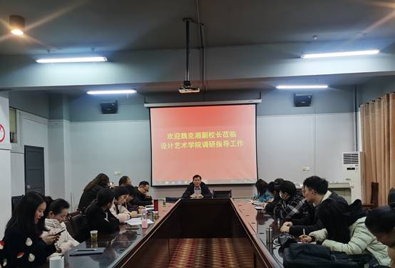 3月9日,副校长魏克湘到伟德国际victor1946开展学科建设和科研工作专项调研,科技处负责同志陪同调研。伟德国际victor1946全体领导班子,设计学“双一流”应用特色学科学术带头人、学术骨干及学院青年教师带代表参加了会议。