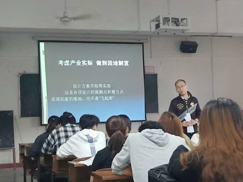 此次讲课根据环境设计专业“十三五”专业综合改革试点项目发展目标,围绕实践环节教学改革展开。王兴业老师从湘潭市“设计下乡”志愿服务大赛方案给予大家指导性意见,并分享了丰富的设计经验;刘方笑老师针对设计思维训练方向与学生进行设计交流;谢林霞老师从快题设计的角度实例讲解设计方法与表现。整堂课堂多媒体课件内容充实,与学生形成良好互动,课堂气氛活跃,三位老师从不同维度开讲,开启实践课程改革的新思路。