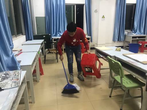 学生党员们来到学海七栋、学海十二栋宿舍,为自习室摆放桌椅,处理死角卫生。通过一个小时的打扫,自习室焕然一新,得到了考研学子和宿管阿姨的一致好评。