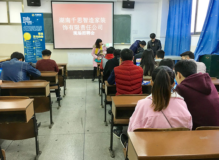 2016年11月8日,湖南千思智造家装饰有限责任公司在五教504举办了一场创业就业的校园招聘会,企业主要针对伟德国际victor1946内即将面临就业选择的环境设计专业的大学生,为他们提供良好的就业平台。