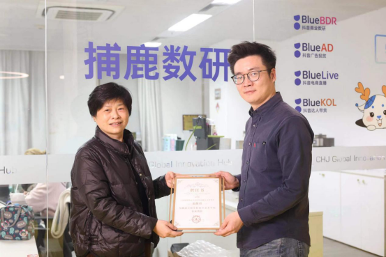 与企业“牵紧手”加深校企合作协同机制。今年是伟德国际victor1946广告学专业与上海捕鹿数研信息科技有限公司进行校企合作的第七年,从短视频制作延伸到直播领域,学生也陆续从线上实习生转成了公司正式员工。广告学专业老师在走访公司时不仅见到了久违的往届毕业生、已实习2个月的应届毕业生,还亲手将一叠简历送到捕鹿数研的主管手中。不仅如此,捕鹿数研公司董事长金俊毅、总经理张立波分别受聘为我院客座教授、企业导师,受王兴业院长委托何滢教授为两位专家颁发了聘书,对于广告学专业教学模式和人才培养质量的提升将发挥重要的促进作用。