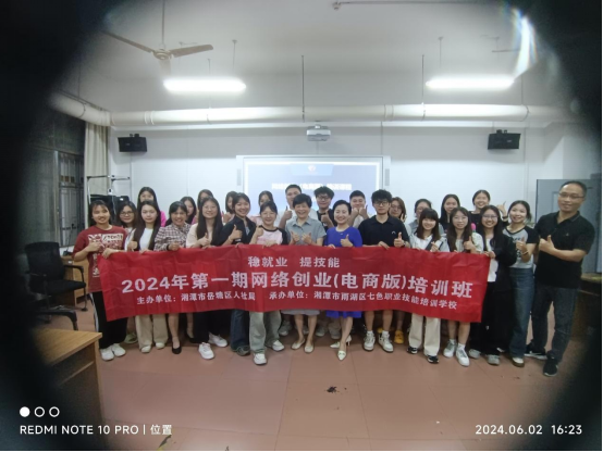 6月3日,“稳就业 提技能”湘潭市岳塘区人社局在我院开设的为期两个月的电商培训班举行结业典礼,参加学习的社会学员和广告学专业22名参训同学、培训班领导和老师代表出席仪式。