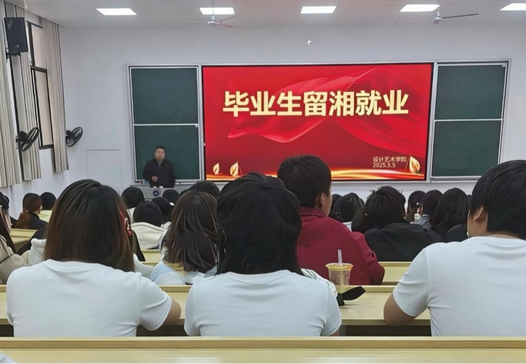 缪书记结合设计艺术专业特点,详细介绍了湖南省支持高校毕业生留湘就业创业的系列优惠政策,包括人才引进补贴、住房保障、创业扶持、职称评定等具体措施。他重点解读了长沙市“人才新政22条”、株洲市“人才30条”等政策中与艺术设计人才相关的条款,帮助同学们准确把握政策红利。同时,缪书记还分享了近年来学院优秀毕业生留湘就业的成功案例,用身边人、身边事激励同学们树立正确的就业观和择业观。