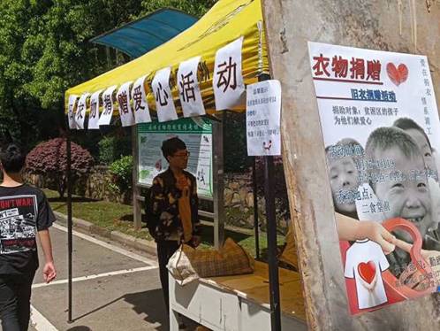 活动开始之前,勤践部积极协调工作,为爱心捐赠活动做好各项准备。勤践部在二食堂门口安排两名干事值班。活动开始,同学们相继前来询问相关事宜,咨询的人越来越多,志愿者们耐心积极地向咨询的人进行解答,并鼓励前来咨询的同学进行捐赠。随着时间的推移,前来捐衣的人越来越多,捐衣的人不仅有学生,老师,还有餐厅工作人员等。志愿者对每一位前来捐衣的同学引导进行信息登录,向他们表示真诚的感谢,并细心地对捐赠衣物进行分类装袋。两天的时间,来捐衣的人总是不断,衣物也越来越多,全校师生的满满爱心装满了数十个袋子。十九号下午六点二十分左右,活动接近尾声,志愿者们纷纷赶到捐衣点,把衣物进行整理、分类、打包,等待第二天捐衣车的到来。最后志愿者们打扫完活动现场,此次捐衣活动圆满结束。