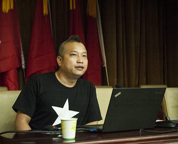 宋军生老师首先给我们讲述了汉字的起源与发展,谈了自己对汉字艺术扩展和空间的独特见解,用图画形成载体,用实物表达汉字,这是把汉字进行了扩大,让汉字融入到艺术之中,让汉字不再只是记录、传输信息的工具,也可作为一件艺术品展示。了解把汉字运用到艺术中在世界出名的几个代表作,让大家知道创造来自空间意识,要激破惯性思维,简单的汉字也可以体现艺术之美。