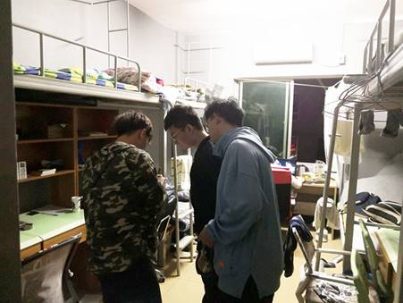 为了加强学生宿舍管理,规范学生行为。4月16日晚10点50分至12点,伟德国际victor1946开展了突击查寝的活动。本次查寝在党总支副书记张曙的带领下,全体辅导员深入到伟德国际victor1946各栋宿舍楼进行突击检查,对学生晚归、夜不归宿、内务卫生、宿舍安全等方面排查。