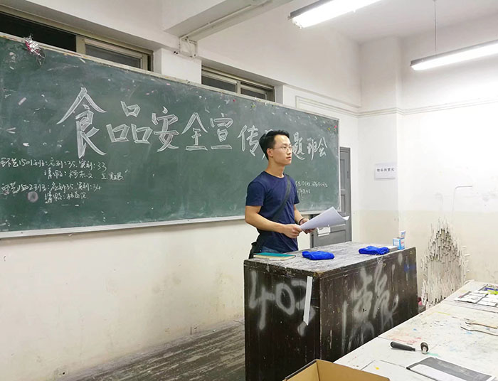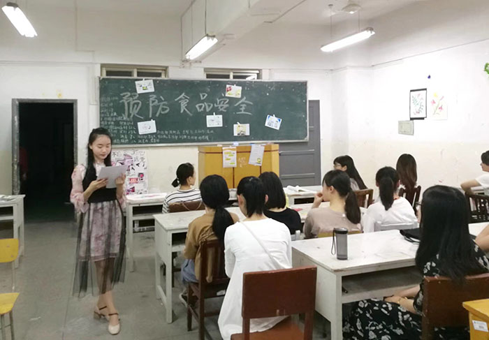活动伊始,各班班长与团支书解读了关于加强学校关于食品安全管理和传染病防控工作的文件。关于食品安全,班长和团支书建议同学们不买街头无证或无照商贩出售的各类食品,不吃生冷,不洁净的食品,不喝生水,不采摘和食用野果,野生蔬菜和来历不明的可疑食物。同时,各班班长还强调要加强体育锻炼,补充营养,保持充足的睡眠,有病及时就医等。在讲到餐厅就餐环境以及食品卫生时,各班团支书讲到,如果发现餐厅就餐环境以及食品卫生存在问题要及时向上级反应。