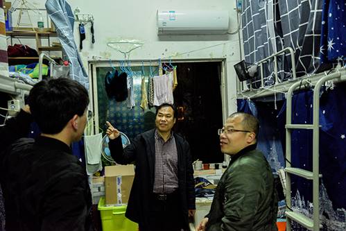 期间,蒋书记、张书记带领辅导员下到学生宿舍,进行逐间排查,蒋书记向同学们了解日常宿舍生活情况,并谈到:“同学们要遵守学校规章制度,杜绝违规违纪,保持宿舍整洁,做到早睡早起,安排好学习时间”。检查中,发现存在个别晚归情况,辅导员及时打电话询问去向并督促学生立即返回寝室。