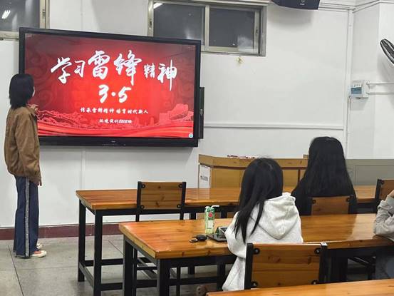 各团支部书记带领团员青年共同观看了雷锋精神的系列视频,学习他们甘于奉献、乐于助人的生平事迹,让同学们更加坚定自身理想信念,将雷锋精神落到实处。全体团员青年带头签订《设计学院文明自律倡议书》和《教室文明公约》,用自身的实际行动为班级和学院建设贡献自己的力量。学生代表纷纷上台发表学习雷锋主题演讲,积极弘扬雷锋精神,并发出“传承雷锋精神,奉献青春力量”的倡议。