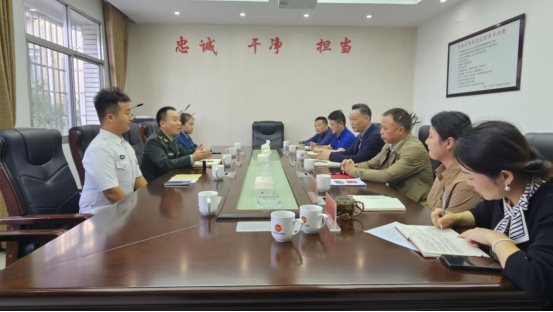 为进一步加强校园国防教育,促进校园军事社团的健康发展,11月5日,”校人民武装部副部长刘宸均、校八一社团”社长视觉传达2301班可正旺,到市退役军人事务局进行工作汇报和学习交流。市退役军人事务局党组书记、局长黄建平,副书记、副局长唐建军以及事务局双拥办等四个科室负责人接待“八一社团”一行。