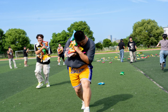 绳似虹飞转,人似蝶翩跹。经过激烈的角逐,最终六个班级脱颖而出,进入期待已久、刺激紧张的“抢零食大作战”游戏环节。获胜班级代表”各显神通“冲进零食池,为班级收获零食,欢声笑语响彻整个田径场。学生们纷纷表示“希望今后还能有类似的活动,今天玩的特别开心,班级同学空前团结,凝聚力得到很大的提升......。”