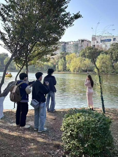 活动当天,社员们携带相机、三脚架等器材,在社团指导老师的带领下分组行动。从晨光中的湖面粼粼波光到午后的林间斑驳光斑,从飞掠水面的水鸟到湖畔漫步的市民,皆成为镜头下的鲜活素材。指导老师结合现场场景示范构图技巧、光线运用和参数调节,针对风景摄影的景深控制、动态抓拍的快门设置等难点进行细致讲解,社员们边学边练,不时交流拍摄心得、相互点评作品亮点,学习氛围浓厚。