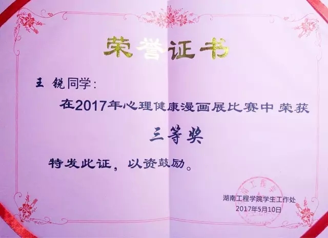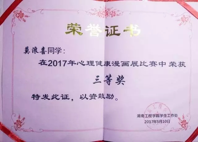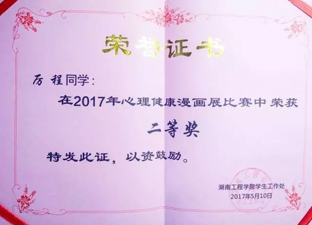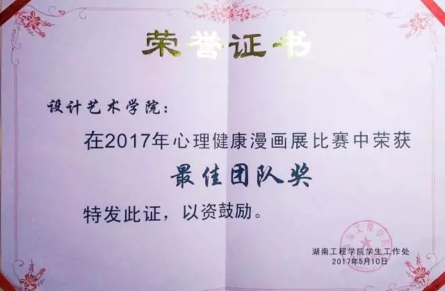 我院一直重视学生的心理健康,不断创新我院学生心理健康教育的形式和方法,本次大赛为学生提供了一个展示自我的平台,各班都拿出了许多优秀的参赛作品。我院数件漫画作品在大赛中脱颖而出!获得了学院最佳团队奖与三个个人奖,分别是环境设计1603班厉程获得个人二等奖、环境设计1603班王锐获得个人三等奖、产品设计1601班莫浪喜个人三等奖!
