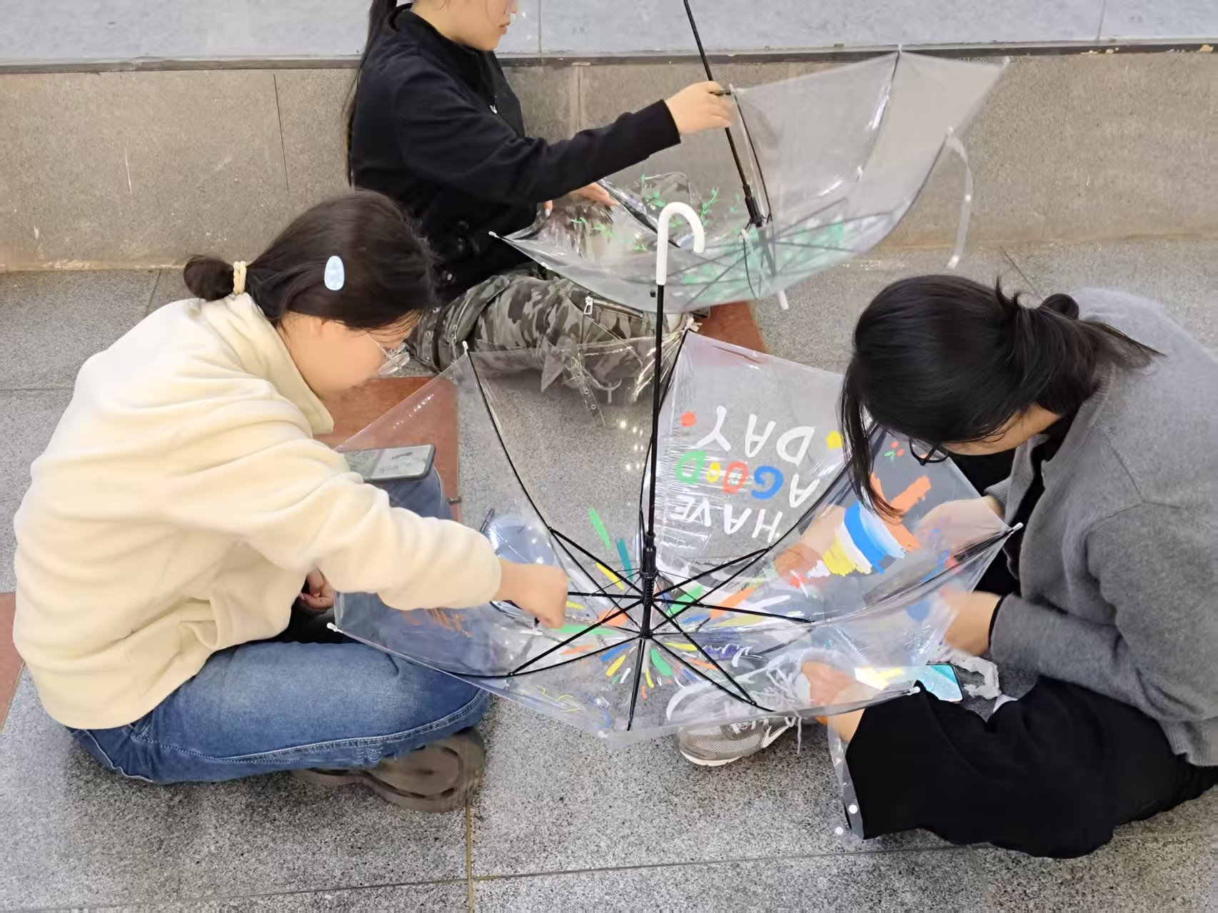 4 月 23 日下午,伟德国际victor1946 “伞下藏温暖,雨天亦安然” 手绘心理活动在五教二楼温馨举行。本次活动由学院心理健康服务部主办,以透明伞为画布、以色彩为媒介,让同学们在艺术创作中释放情绪、治愈心灵。