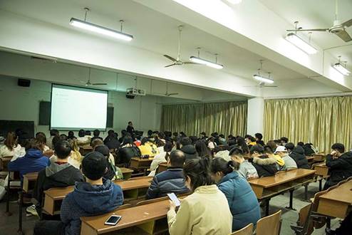 讲座中,冯广以ppt的形式讲述自己毕业后及身边成功人士的创业经历,告诉学生要明确现今的市场需求及方向,培养自己的创业创新意识。他指出,大学生要从企业用人的角度来读大学,在知识全球化的今天,企业在用人时越来越关注大学生的合作能力,这对高校人才的培养提出了新的要求。之后,冯广分别从“职业规划”“设计师必须具备的职业素质”“如何准备面试”“工业设计的就业方向”四个方面,帮助学生解析如何提高职业素养,如何选择就业方向等问题。讲座上气氛热烈,同学们认真听讲,仔细记录。